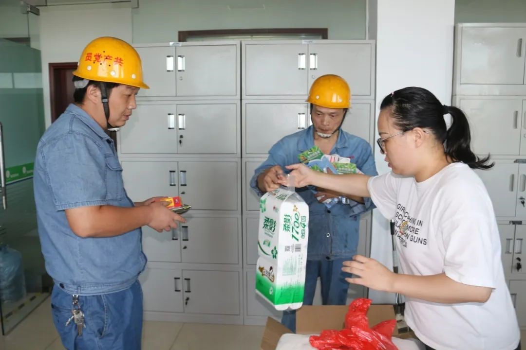 駐廠第二天,該公司緊接著購進(jìn)了一批牙膏、洗衣粉、洗潔精、衛(wèi)生紙、女性護(hù)理用品以及桶裝水等日常生活用品,分發(fā)到了基層14個(gè)車間部門所有職工手上。8月21日,公司工會(huì)又花費(fèi)近4萬元,為每一名職工購買了沐浴露、洗發(fā)水各一瓶,牙膏一盒、牙刷兩支、透明皂兩塊,還給76名女職工每人購買了一套女性護(hù)理用品,這些生活用品,大大解決了職工洗漱用品的難題。