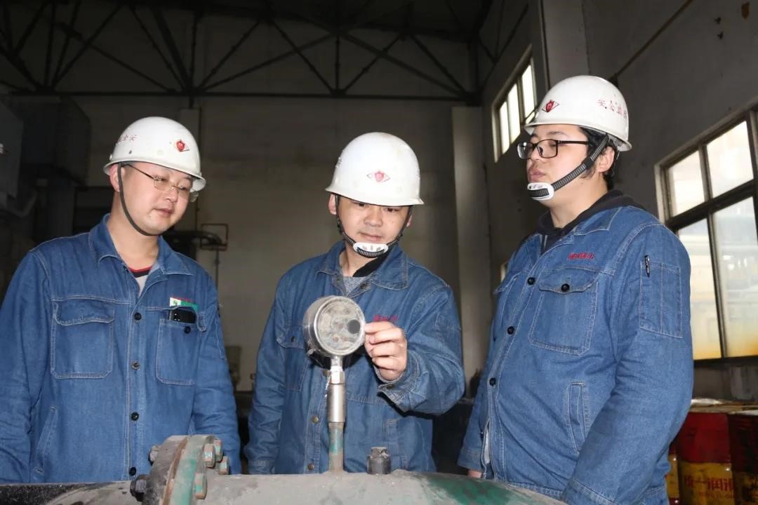 新高焦化的勞動(dòng)節(jié)在嚴(yán)謹(jǐn)細(xì)致的責(zé)任里,為保證設(shè)備正常運(yùn)轉(zhuǎn),三名安全員正在檢查設(shè)備儀表運(yùn)行情況。