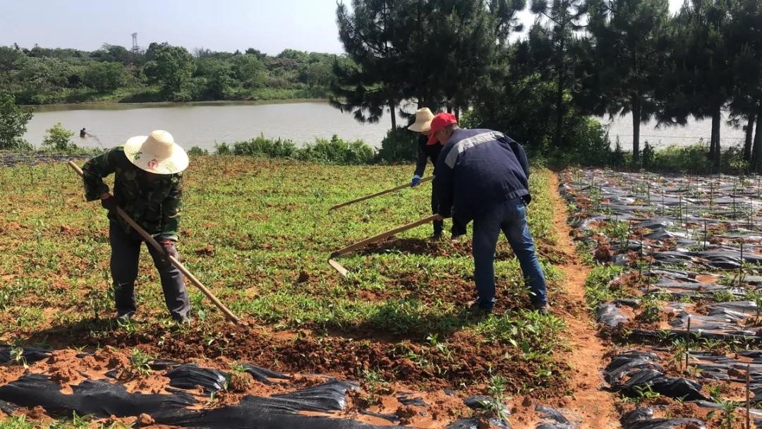 鳴翠湖公司資產(chǎn)運(yùn)營二部組織人員為新種下的蔬菜地除草。